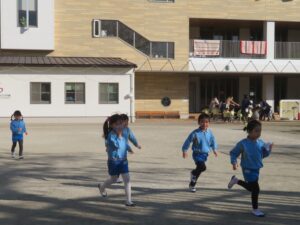 年間を通して、外遊びを中心に元気に体を動かし、体操・行進・マラソンを通して基礎体力をつけます。また、年齢に合った運動遊具を用い、俊敏性や跳躍力を鍛える中で、身の回りの安全・危険を学びます。他に、スイミングスクールで専門スタッフによる指導を受け、水にも親しみ、強い心と体をつくります。