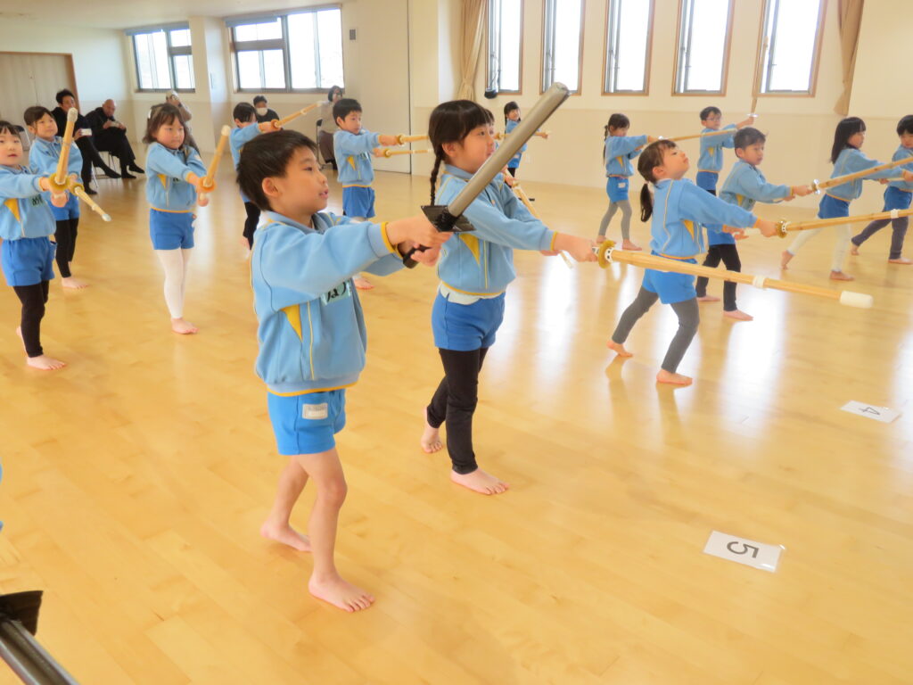 ⭐子ども竹刀を持って、かっこよく「ヤー!!」
